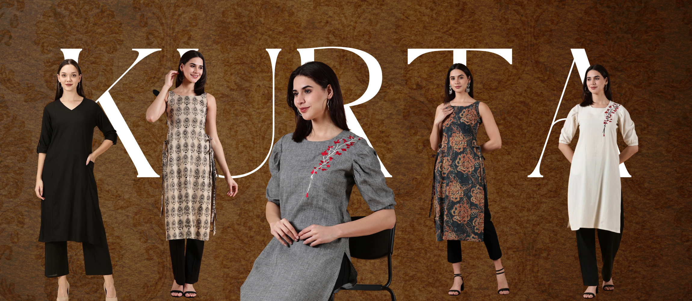 - Kurtas and Kurtis: We offer the ultimate comfort for work in pieces that blend traditional Indian designs with Western styling. Our kurtas and kurtis are refined, stylish, and perfect for a polished, yet relaxed look.