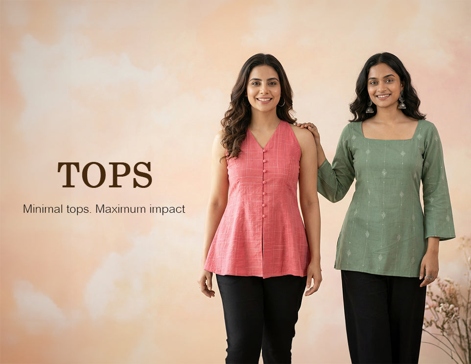 - Tops & Dresses: Our dresses and trendy tops feature Indo-Western silhouettes designed for movement. These pieces handle everything your day throws at them. Clean lines, thoughtful construction, and fabrics that actually feel good to wear.