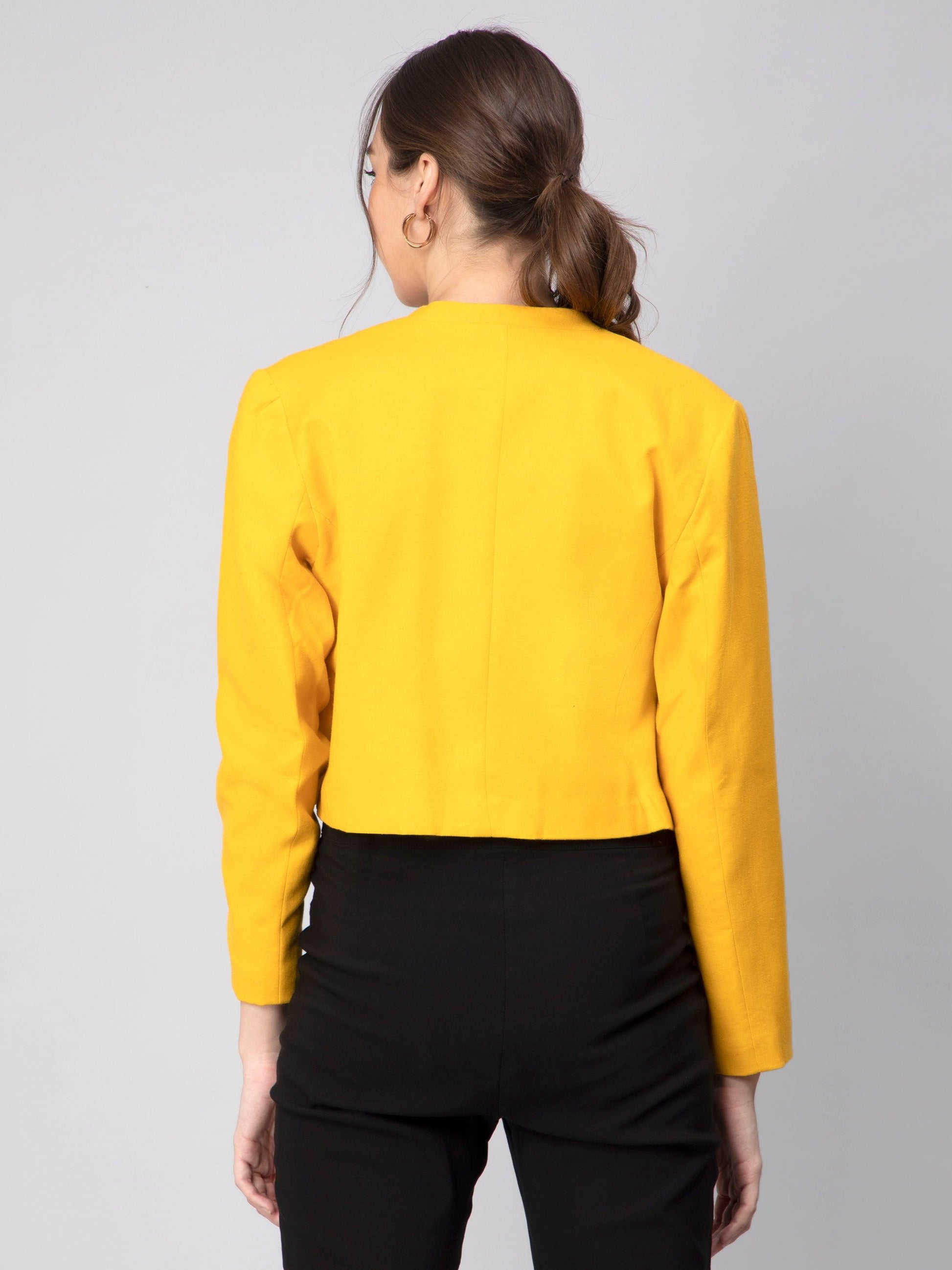 Vibrant Yellow Solid Cropped Blazer