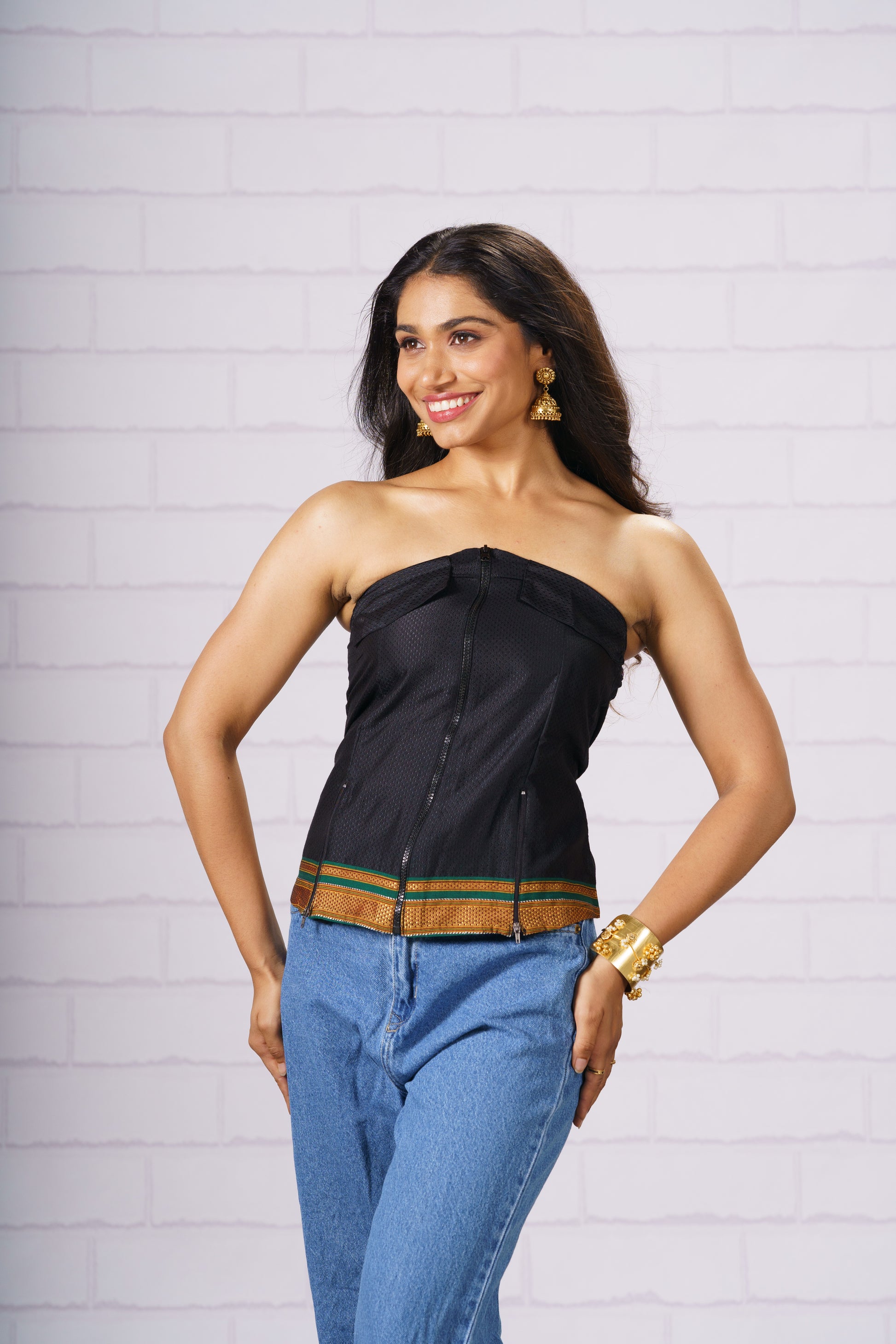 Black Tube Top with Zari Border Tradition, Rebooted. For the Bold & Beautiful.