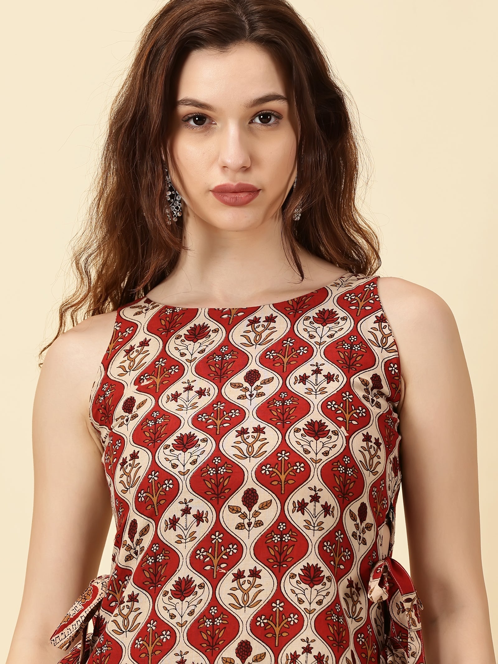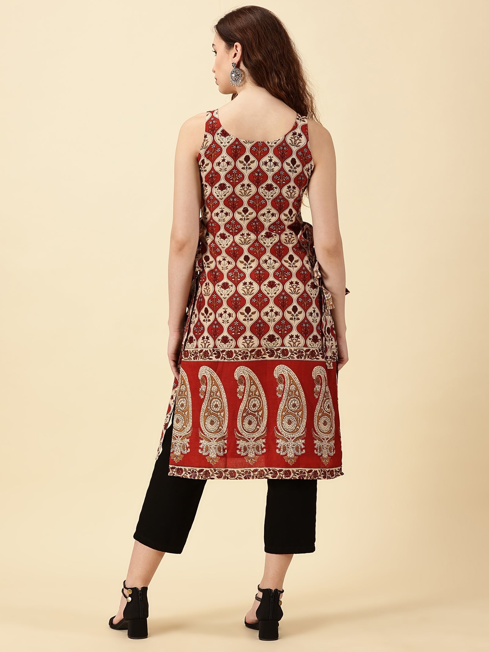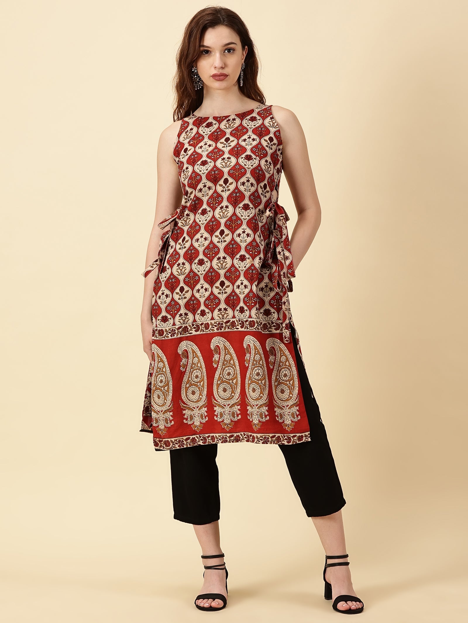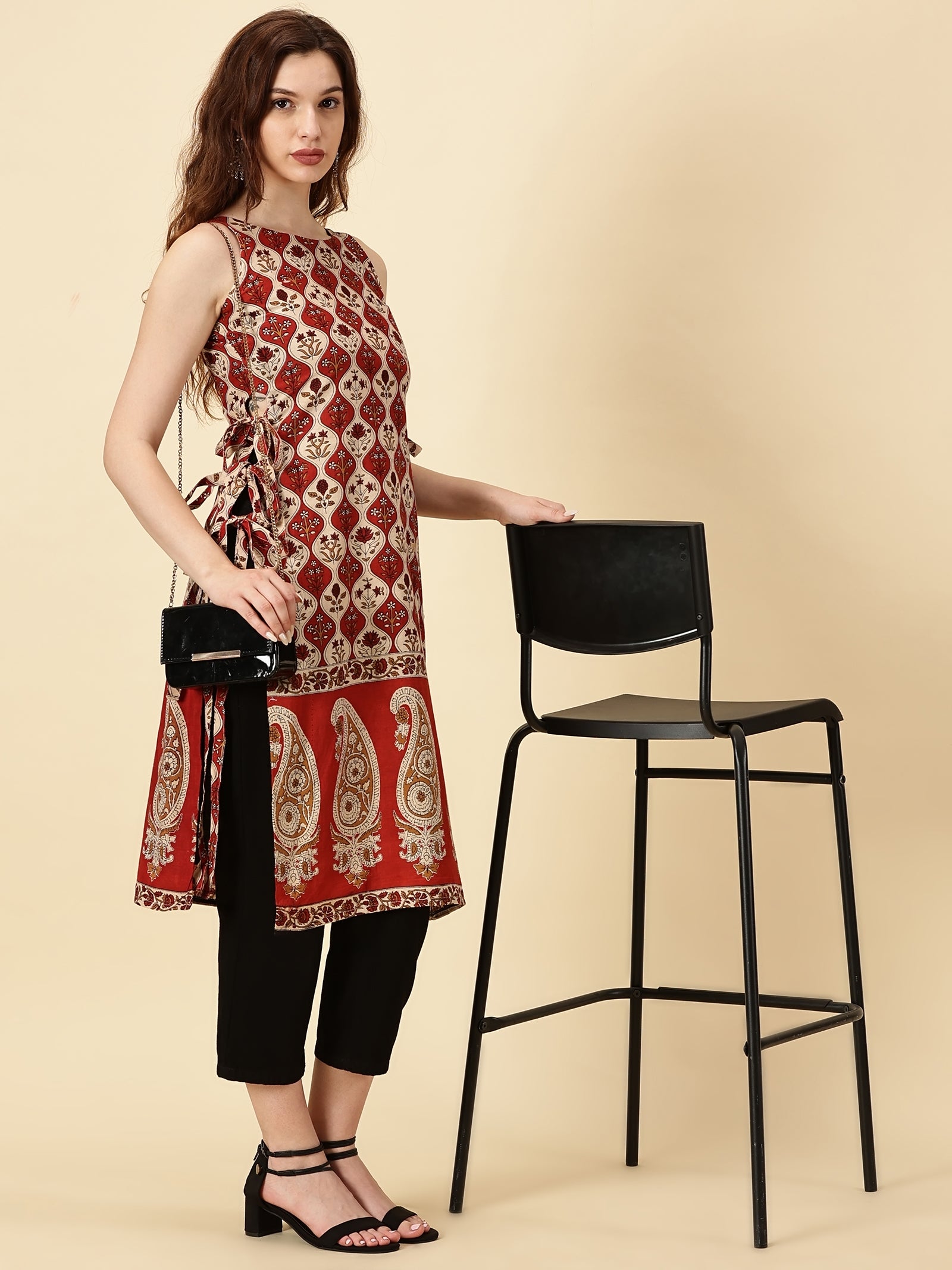 Indyvarna Side Slit Kurta – Traditional Craftsmanship with Modern Elegance Make a bold statement with the Indyvarna Side Slit Kurta, a stunning fusion of traditional handblock prints and contemporary design. Featuring a flowing cape silhouette, this best-seller is designed to turn heads, with long, dramatic ribbons tied elegantly at the sides for an added touch of sophistication. The sleeveless design enhances the kurta’s effortless grace, while concealed side zips ensure a flawless, comfortable fit. Crafted from soft cotton, this kurta exudes heritage with a modern edge, perfect for any occasion where you want to make an entrance. Whether you're at a festive event or enjoying a casual outing, the Indyvarna Side Slit Kurta will be your go-to piece for a truly standout look. |