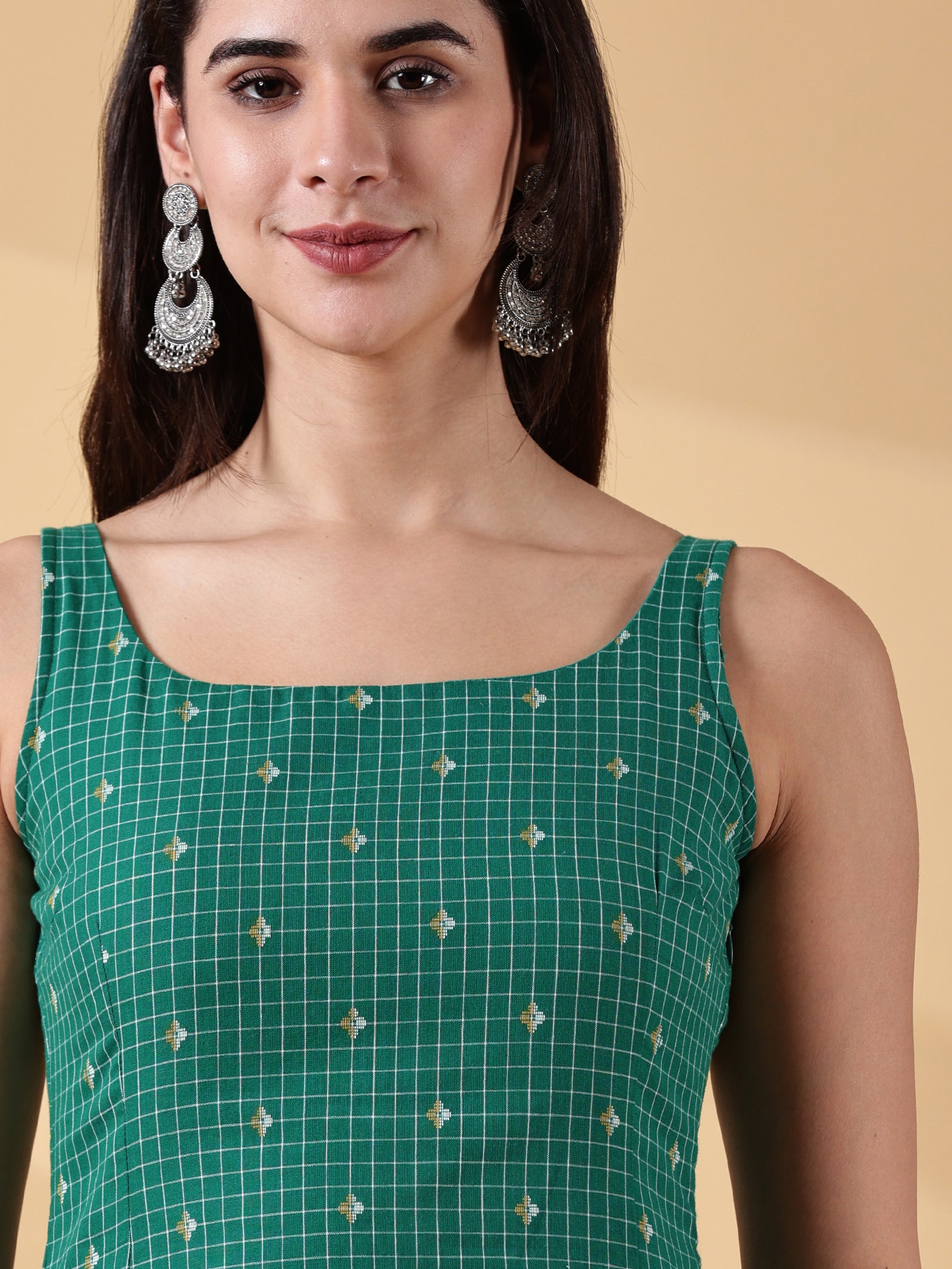 Turn everyday chic with our Kiyara Deep U-Back Cotton Kurti Top, Green - made from 100% pure cotton with a soft lining for all-day comfort. The deep U-back tie design adds effortless grace, while the pad-insert option gives confident wear. Perfectly fitted and easy to style — pair it with jeans, skirts, or trousers, and go from Ethnic Jhumkas to western hoops in a heartbeat.