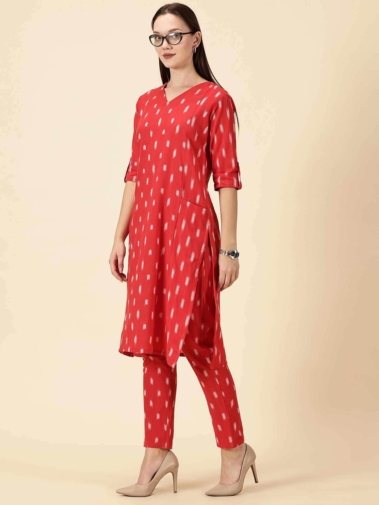 Elevate your style with our Handwoven Ikat Cotton Co-ords, exclusively crafted by Indyvarna. Made from premium handwoven cotton, these co-ords offer unmatched comfort and breathability, making them perfect for both casual and semi-formal occasions. The unique Ikat pattern adds a touch of elegance and tradition, making this set a standout piece in your wardrobe. Ideal for workwear or a stylish day out, these co-ords are a versatile choice that suits most occasions. Experience the magic of handwoven craftsmanship and step out in style with Indyvarna's exclusive collection. Shop now to embrace comfort, style, and tradition all in one!