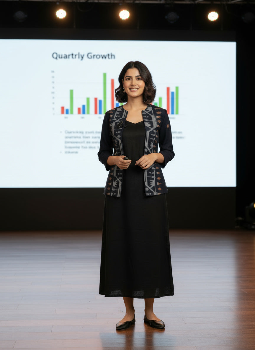 Its open-front design makes it effortlessly versatile — pair it with a saree, kurta-pant set, or top and trousers. From office meetings to festive evenings, this one layer takes you anywhere in style.
